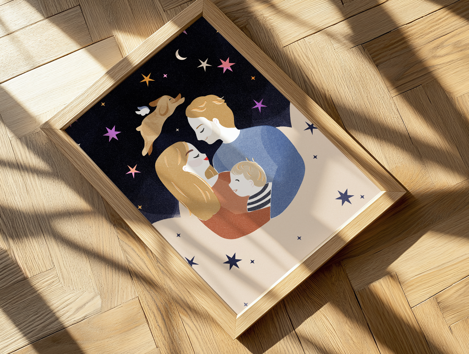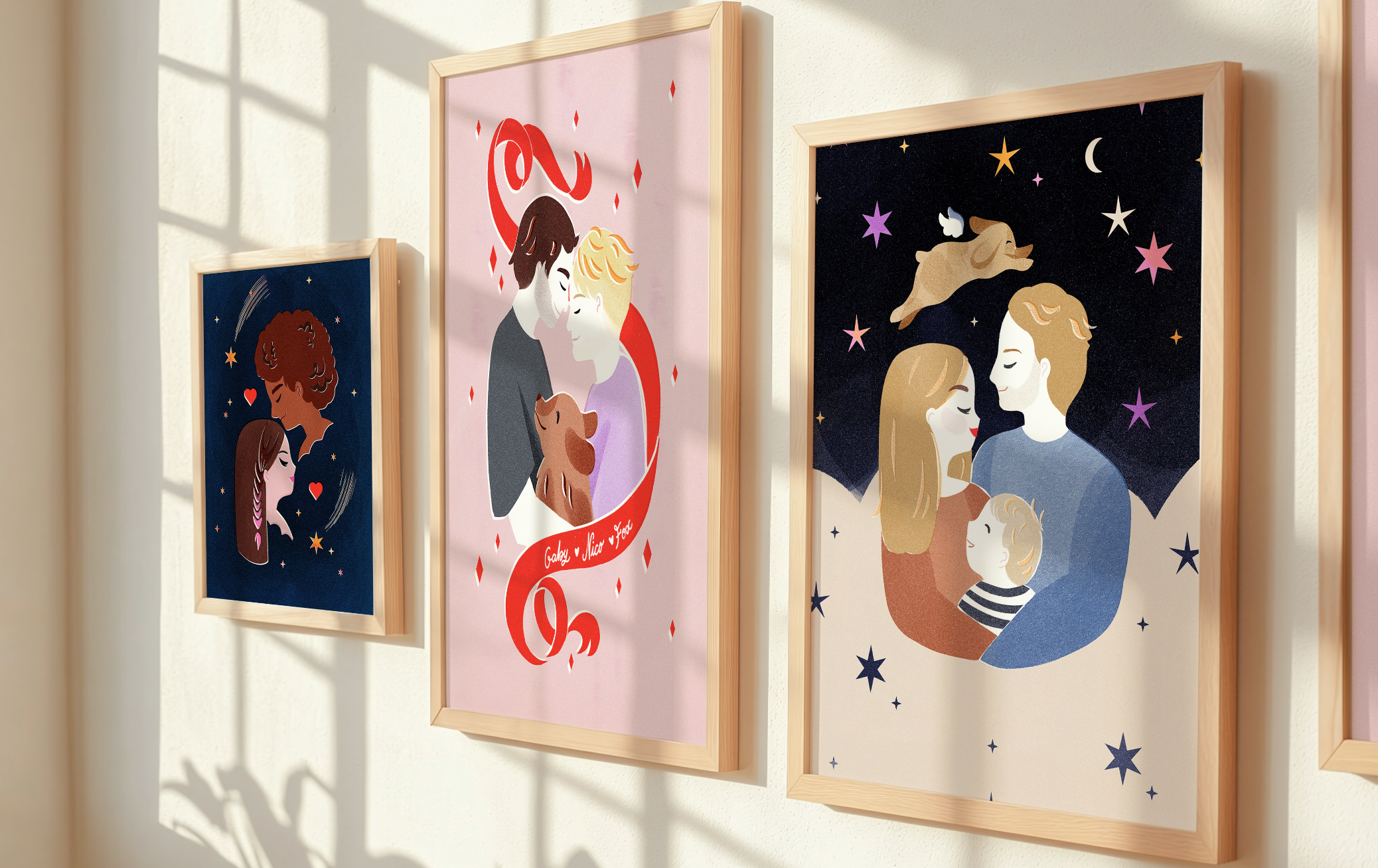 Je cherchais justement un cadeau qui sorte de l'ordinaire et de la traditionnelle boite à chocolat, pour la saint-Valentin. Le style graphique tout doux de Lucile correspondait bien à ce que je voulais transmettre à mon chéri ! En plus, n'habitant pas dans la même maison, la réception de l'illustration a été une double surprise pour lui et il a adoré !